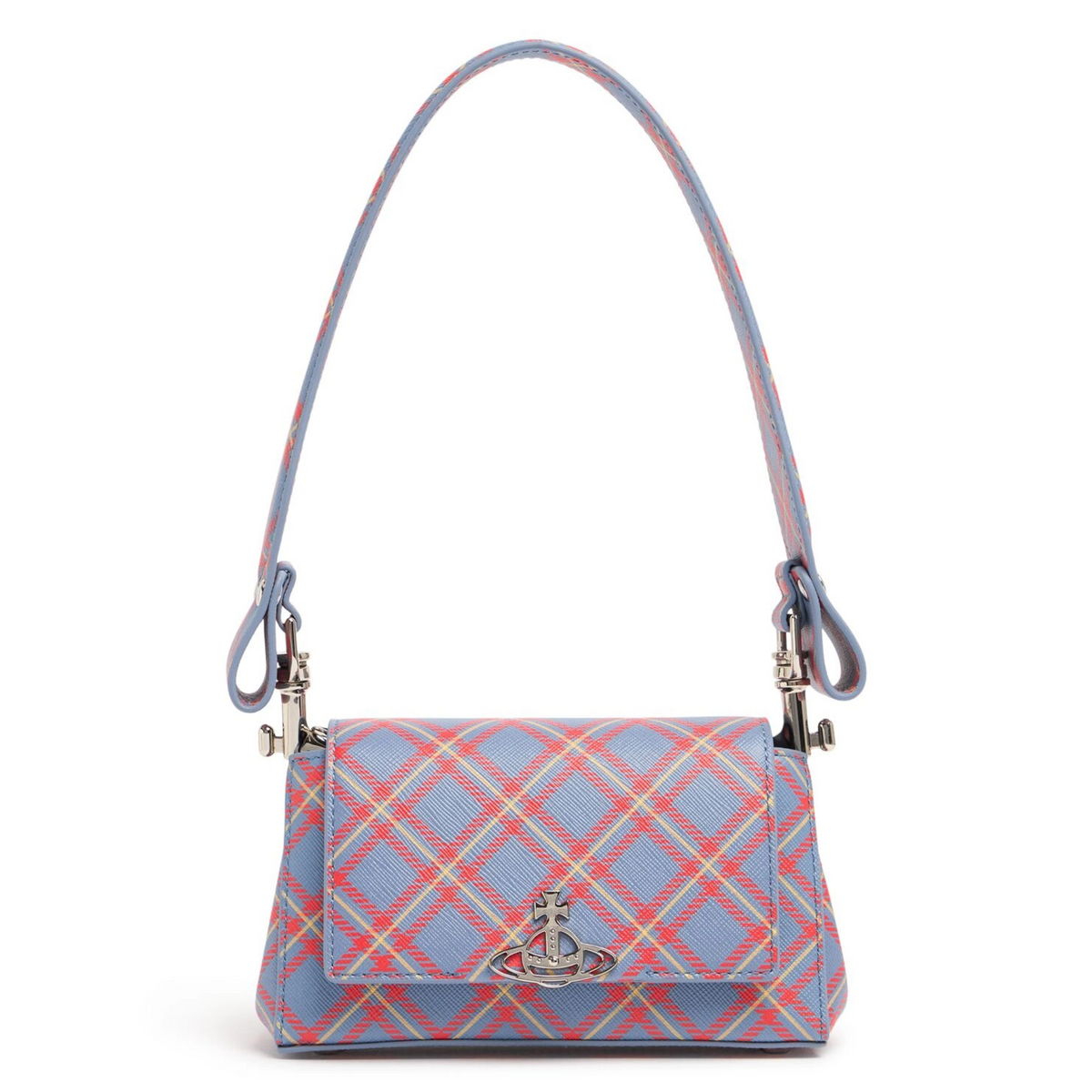 VIVIENNE WESTWOOD ORANGE BLUE TARTAN ELENA POUCH ZIP TOP。Small Purse in BLUE-ORANGE-TARTAN | Vivienne Westwood®。1_c72a0c96-5335-4a42-a616-。【Vivienne Westwood】Elena clutch orange-blue(102855784)